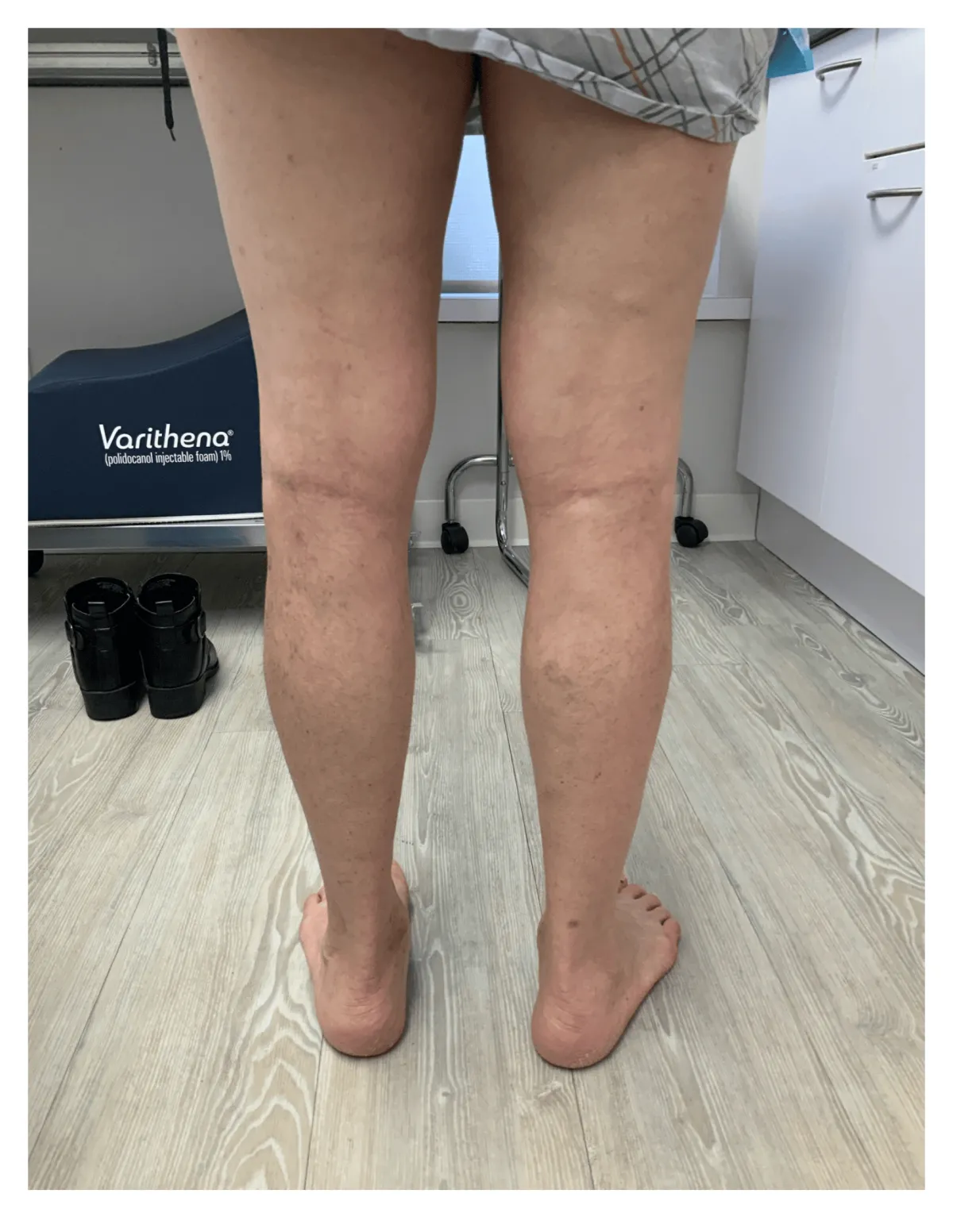 Recovery is very quick after the Varithena procedure and most patients return to normal activities right away. Some of the treated areas may be tender to touch and bruised, but this is very normal. We are happy to answer any questions or concerns, if you call or text the office. After the treatment, your provider will apply your medical compression stocking or wrap your leg in an ACE bandage. You will wear compression stockings during the day for at least three weeks after your procedure to ensure that the treated veins close completely. You will be asked to avoid any weight lifting or heavy exercise during the first week as well. Light cardio activity is fine and walking daily is especially encouraged. Before you leave your Varithena appointment, we will get you scheduled for an ultrasound follow up. This follow up is scheduled for the following week to ensure that the vein is closing properly.